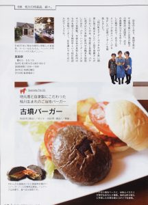王塚古墳をモチーフにした桂川町のご当地グルメが、「古墳バーガー」「王塚古墳マドレーヌ〈古代の鍵〉」です。古墳バーガーは、白いバンズと黒いバンズの2種類があり、黒い方は石炭をイメージして「イカ墨」を練り込んでいるそうです。ネット情報によりますと、この古墳バーガーはエジプト考古学者の吉村作治(よしむら さくじ)氏からも、その美味しさに「お墨付き」を得たようです。